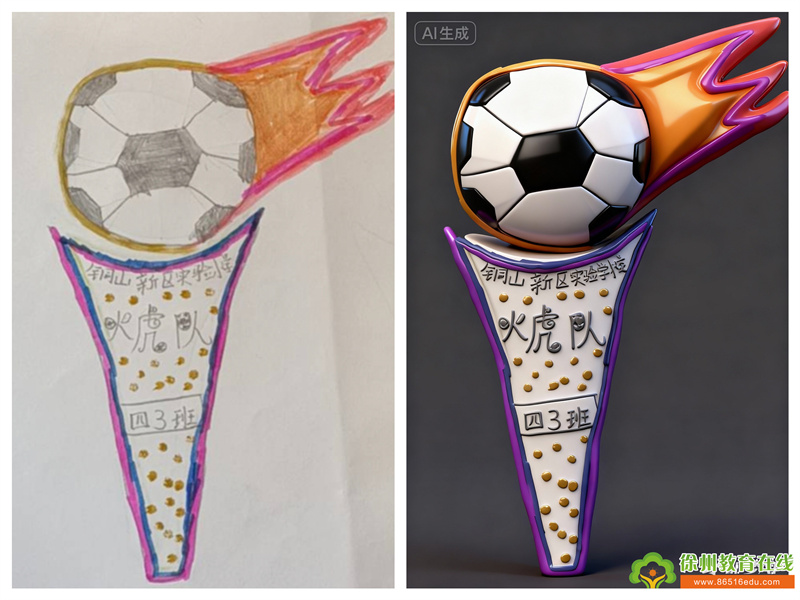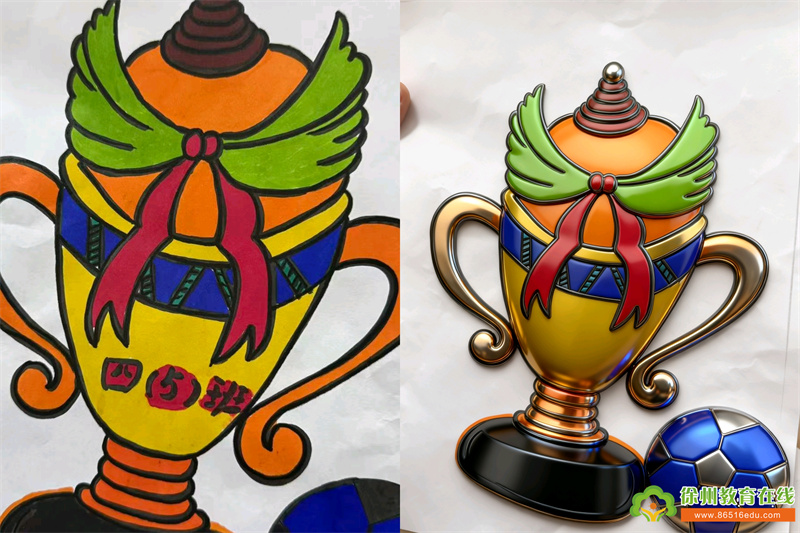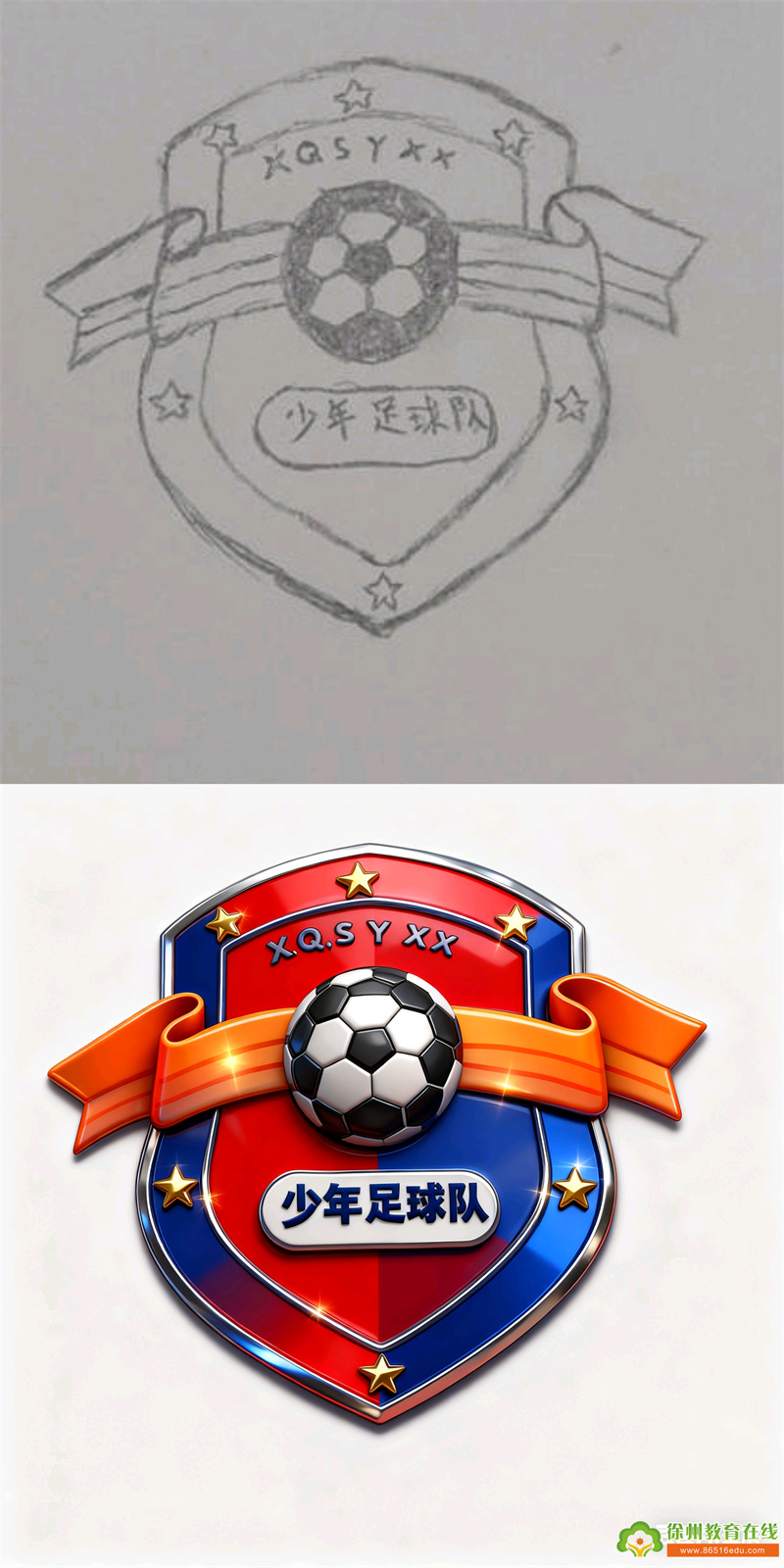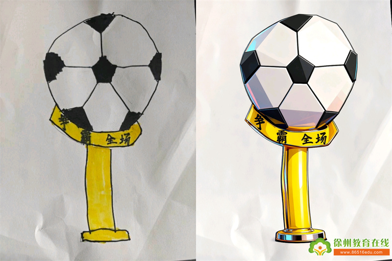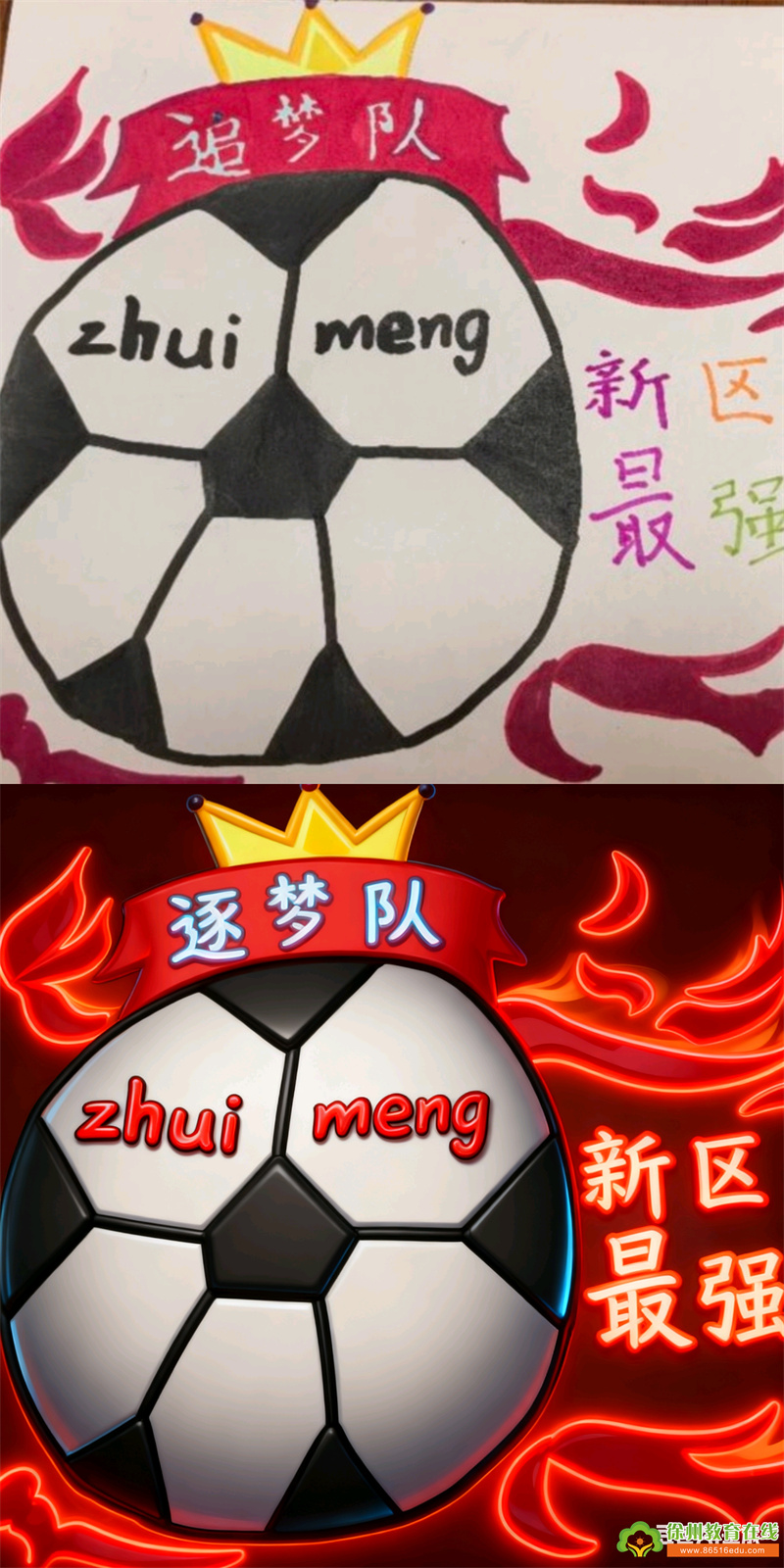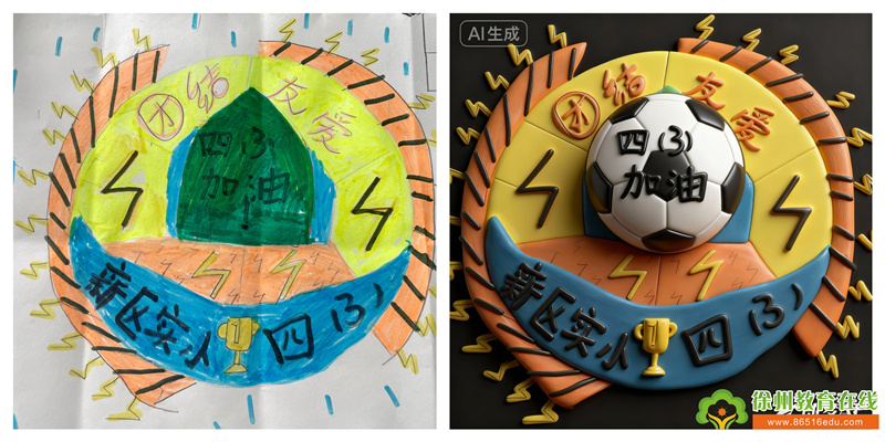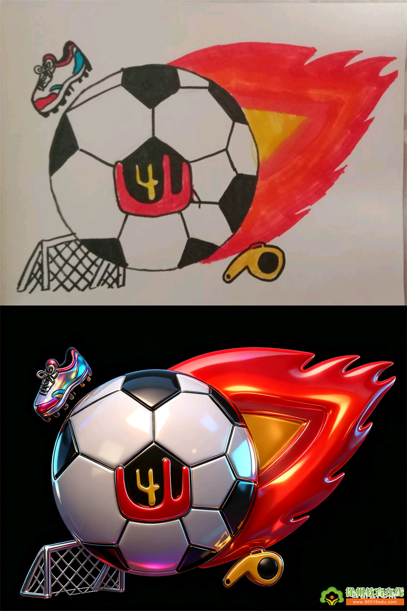 本次活动以“学科融合”为核心,打破体育与美术的学科壁垒,让足球运动的竞技活力与艺术创作的审美价值深度交融。学子们以足球为灵感载体,将球队精神、班级文化融入设计之中,通过线条勾勒、色彩搭配、图形创意,把对足球运动的热爱与理解转化为一件件富有感染力的视觉作品。在创作过程中,AI工具成为重要助力,学子们借助智能设计软件优化构图、调试色彩、拓展创意维度,既提升了作品的专业质感,也培养了数字化时代的创新思维与实践能力。