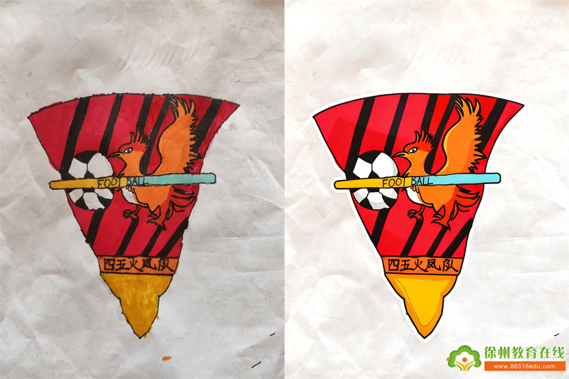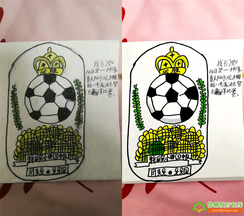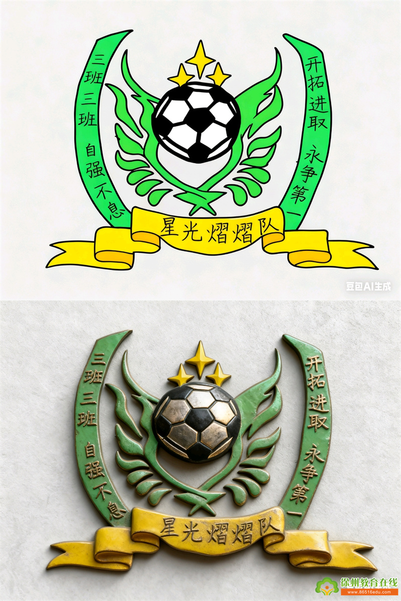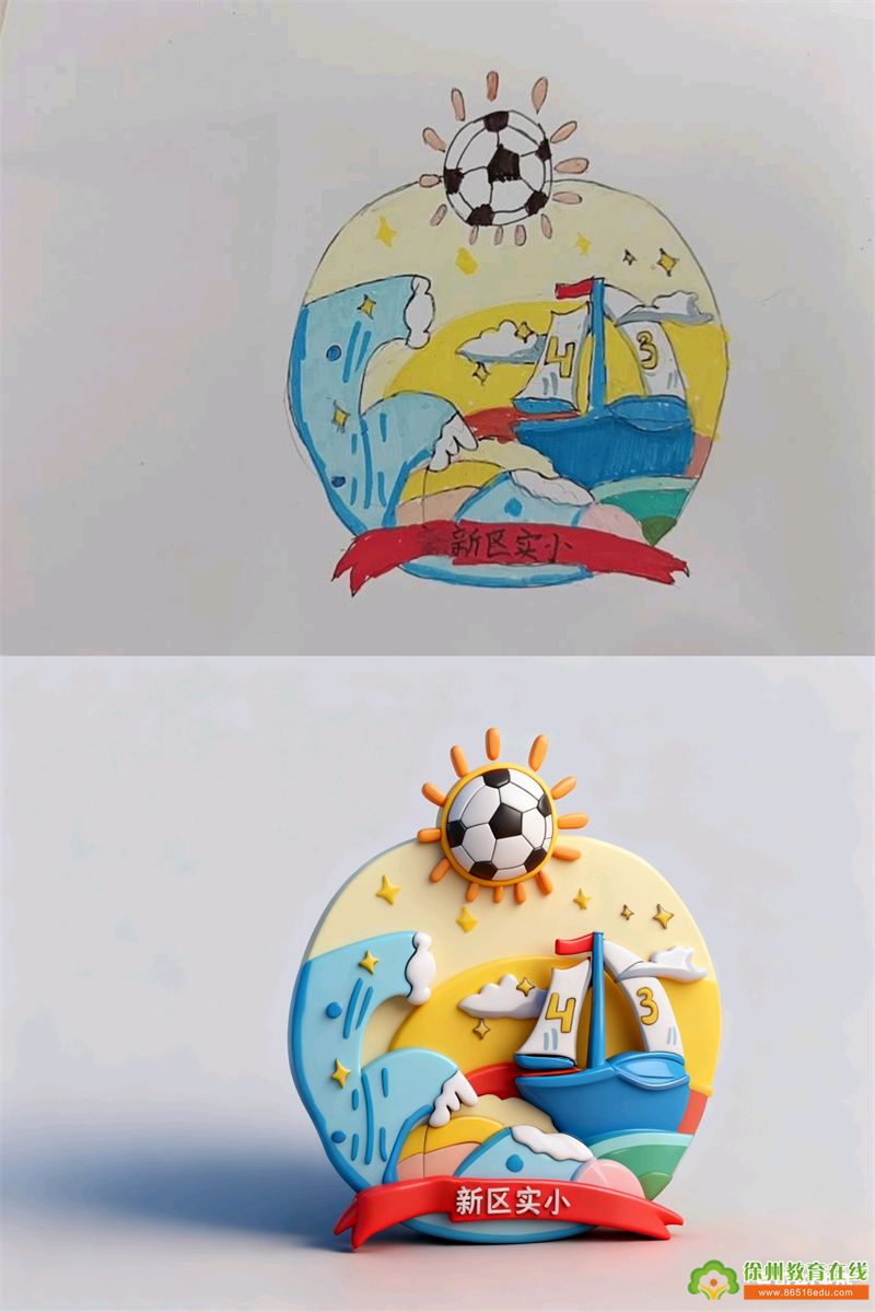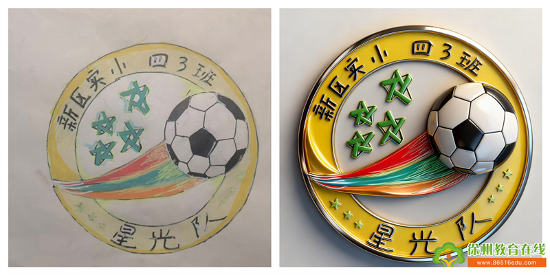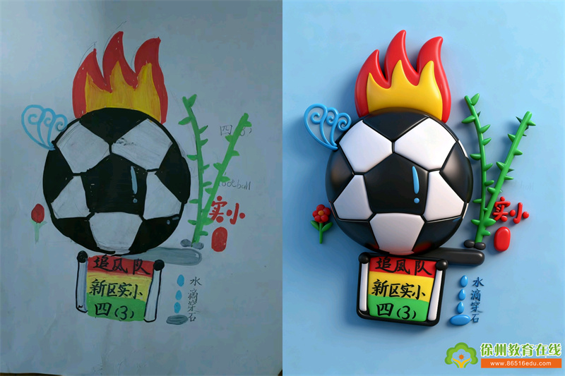苏公网安备 32031102000486号在徐州市铜山区新区实验小学“校长杯”校园足球联赛热烈启幕之际,为深化五育并举育人理念,学校美术组与体育组跨界联动,精心策划开展班级足球队徽设计活动。活动吸引全校120名学子踊跃参与,经评审筛选,44组优秀作品成功入围,最终通过大众投票评选出2组创意佳作,正式成为班级球队专属队徽,让足球运动在艺术赋能中焕发别样光彩。