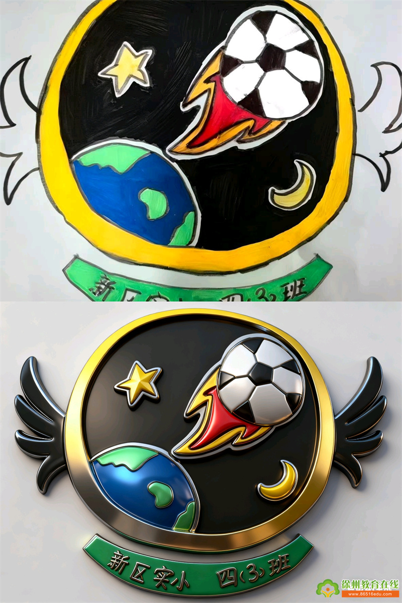 在新区实小“校长杯”校园足球联赛热烈启幕之际,为深化五育并举育人理念,学校美术组与体育组跨界联动,精心策划开展班级足球队徽设计活动。活动吸引全校120名学子踊跃参与,经专业评审筛选,44组优秀作品成功入围,最终通过大众投票评选出2组创意佳作,正式成为班级球队专属队徽,让足球运动在艺术赋能中焕发别样光彩。