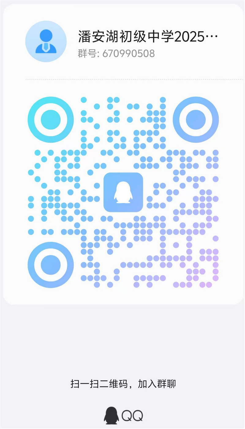 请有意报名参加潘安湖初级中学2025校聘教师招聘的老师,扫码填写相关信息,并加入QQ群,时刻留意群内信息。