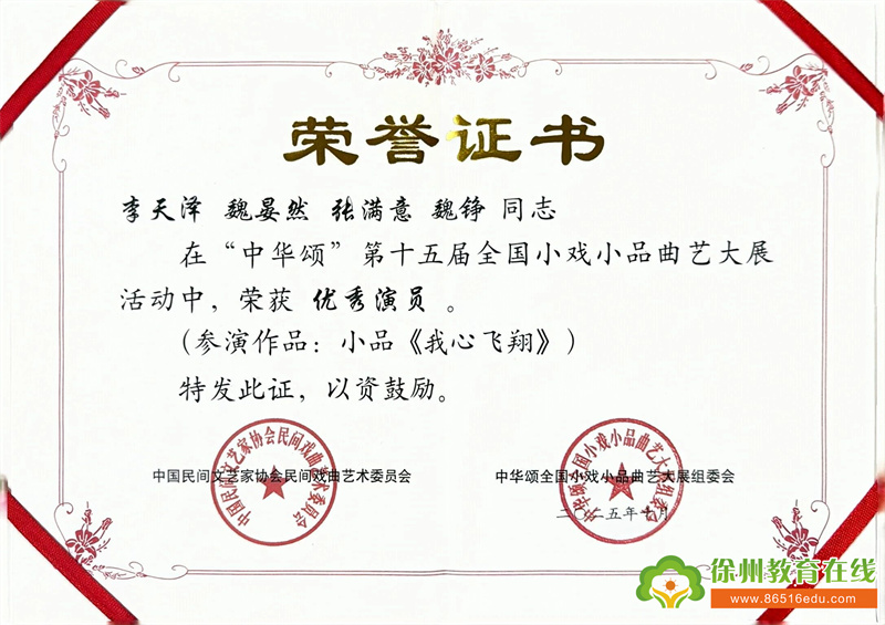 除团体殊荣外,个人奖项也喜讯不断:王龙利校长、李明老师荣获“优秀策划”;李明、李萌老师荣获“优秀作曲”;李天泽、魏晏然、张满意、魏铮荣获“优秀演员”。