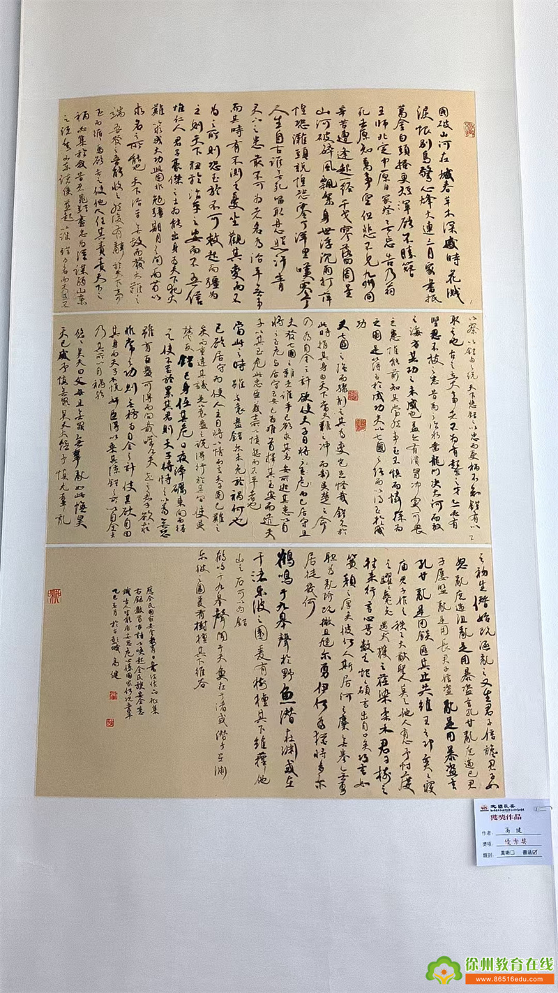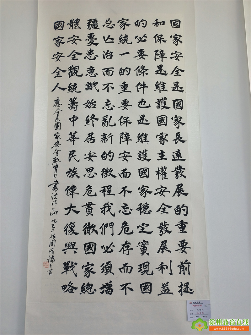 据了解,本次展览由铜山区委国安办联合教育局、文联共同主办,共展出涵盖书法、国画、水彩等形式的作品300余件。活动紧扣"总体国家安全观"核心主题,特别设置学生单元,旨在通过艺术创作深化青少年对国家安全的立体认知。铜山中学选送的获奖作品中,《习近平语录》(王威淇/书法)以虚实相间的笔触勾勒网络安全防线,《名言警句》(马云/书法)通过居安思危诠释安全防范理念,充分展现了当代中学生对国家安全的多元理解。