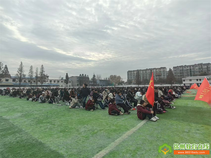 会议分为两部分。第一部分在操场举行。会上,高二年级部副主任杨新风以详实数据为支撑,全面开展成绩分析。从年级整体平均分、各分数段分布,到单科优势与薄弱学科对比,清晰呈现了学生半学期的学习成效;同时针对高二学科难度提升、知识体系扩容的特点,深入剖析了学生在知识掌握、学习方法、心态调整等方面存在的共性问题,并提出后续教学改进举措,为家长了解孩子学习状况提供了清晰参考。
