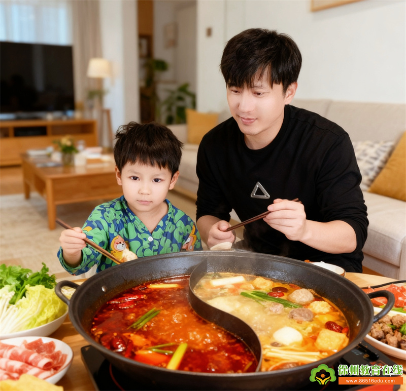 暖心火锅:家人围坐,热气腾腾的汤底翻滚着新鲜食材,说说笑笑间涮煮美味,这是独属于中国人的冬日限定幸福,也让孩子们体会到团圆的温暖。