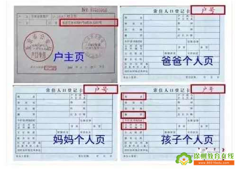 (1)户口首页和适龄儿童页复印在一张A4上;父母同一户口,复印在一张A4上。