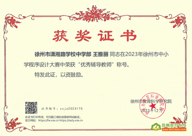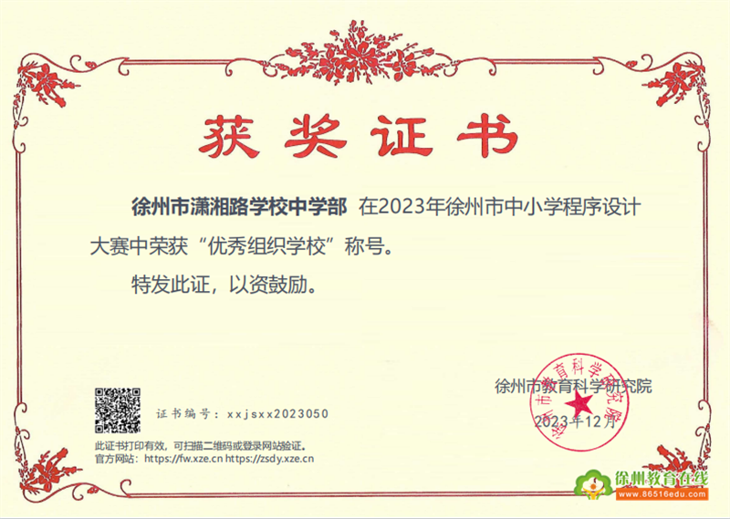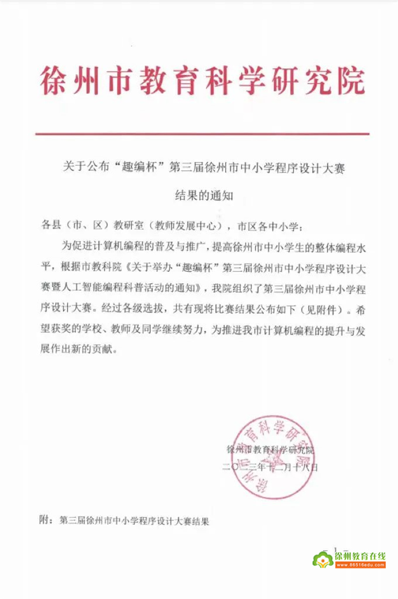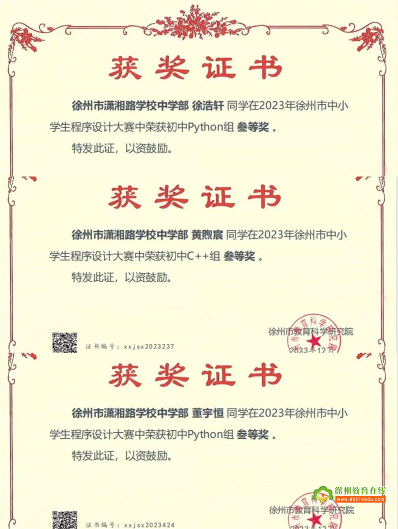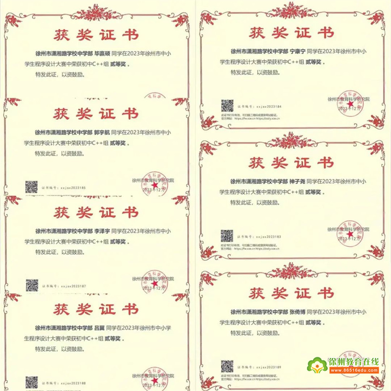 苏公网安备 32031102000486号近日,“趣编杯”第三届徐州市中小学程序设计大赛落下帷幕,徐州市潇湘路学校学生表现优异,荣获多个奖项。