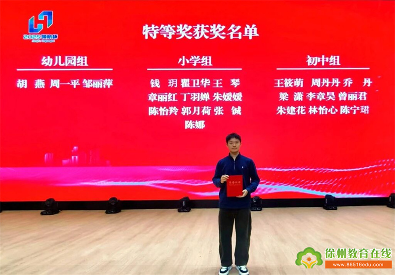 近日,2025年“领航杯”江苏省数字化教学优质课大赛落下帷幕,来自全省13个市7个学科的92名优秀选手齐聚一堂。我校乔丹老师作为徐州市初中数学学科代表,凭借扎实的教学功底、精湛的教学技艺和出色的临场发挥,在激烈角逐中脱颖而出,荣获江苏省特等奖。
