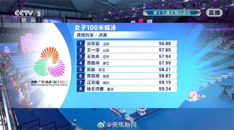 11月11日晚,十五运游泳比赛继续在深圳大运中心游泳馆举行。女子100米蝶泳决赛吸引了全国媒体的关注,最终,徐州名将张雨霏斩获冠军,拿到了个人在本届全运会上的第一枚金牌!