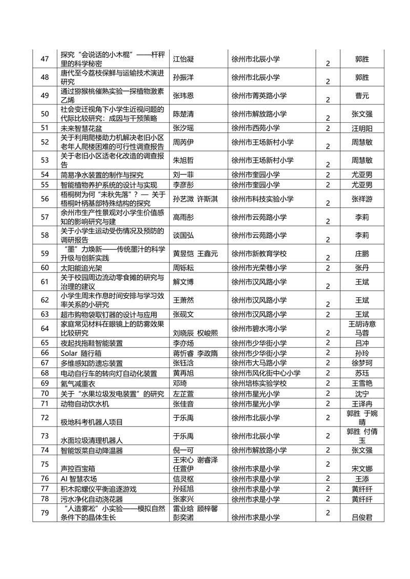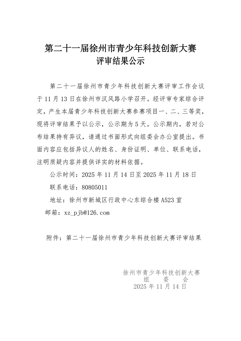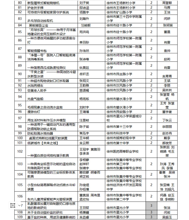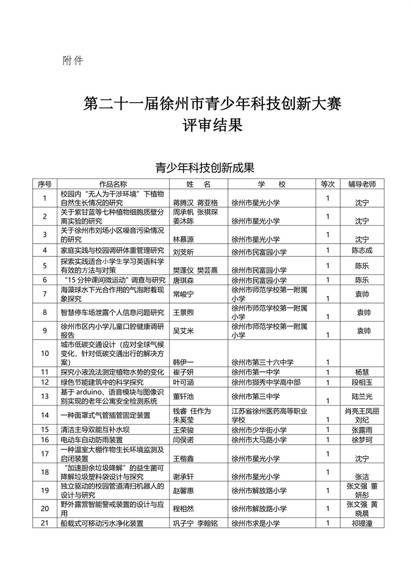 第二十一届徐州市青少年科技创新大赛评审结果公示