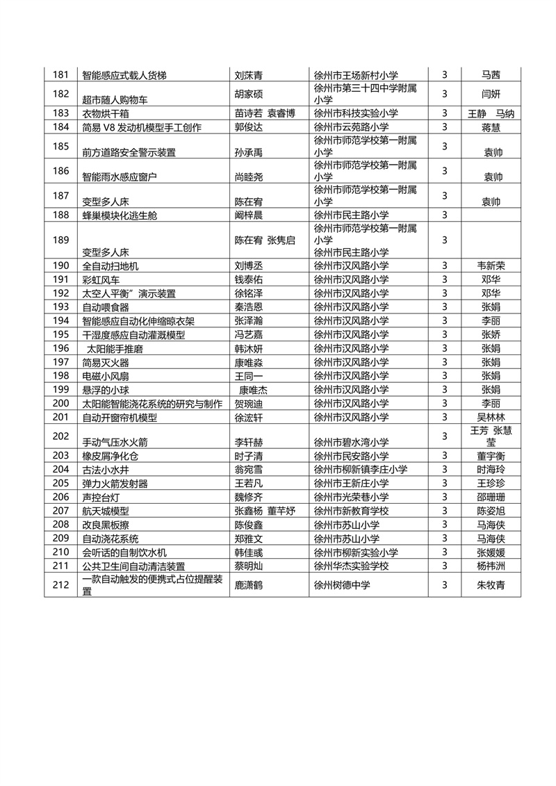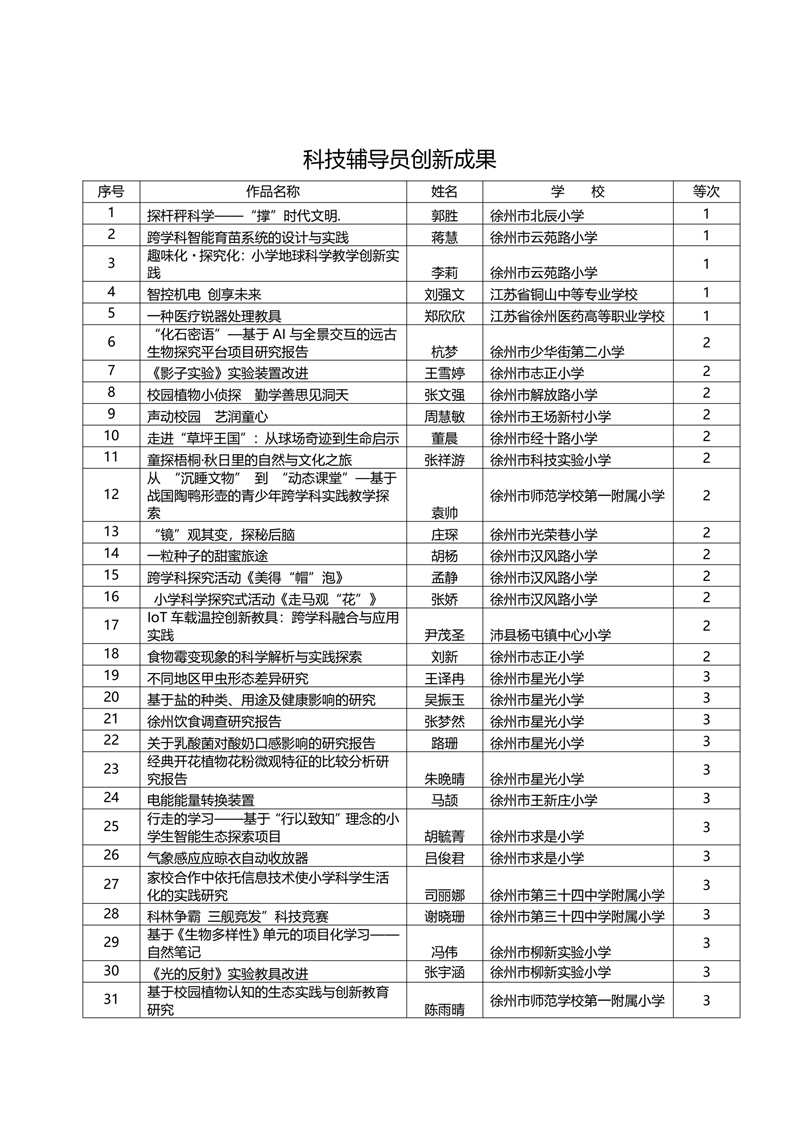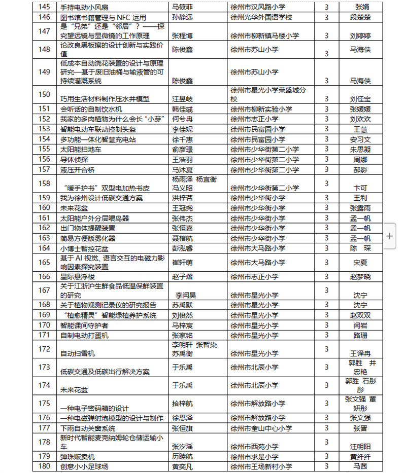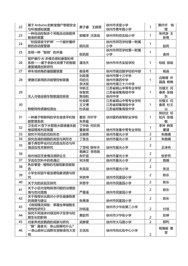 第二十一届徐州市青少年科技创新大赛评审结果公示