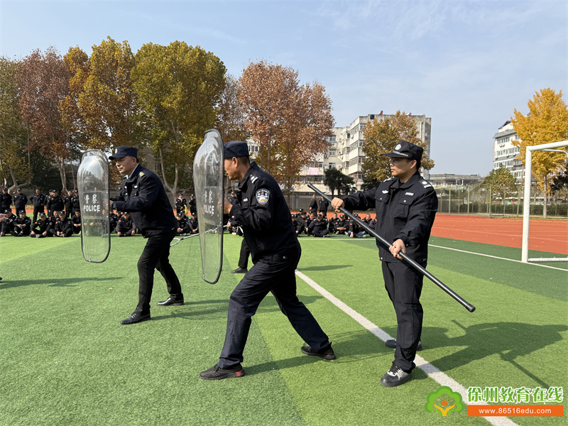 最引人注目的是防暴恐实战演练。特警教官团队针对校园可能出现的突发暴力事件,现场讲解并演示了防暴盾牌、防暴钢叉、长警棍等安保器械的配合使用方法,组织了模拟对抗演练。通过“一对一”、“多对一”的实战对抗,保安们掌握了制伏“歹徒”的有效战术与合作技巧,极大地增强了应对突发暴力事件的信心和能力。