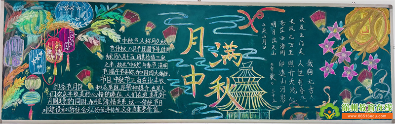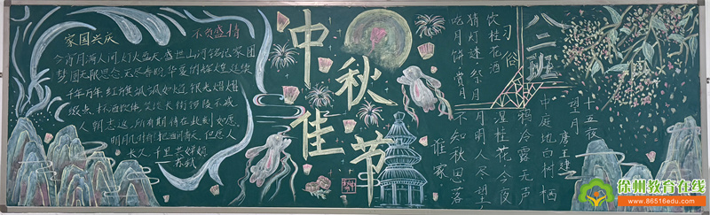 苏公网安备 32031102000486号丹桂飘香,玉露初凉,又是一年中秋。喜迎中秋,庆祝佳节,徐州市东湖实验学校开展了“浓情中秋”主题黑板报评比活动。本次活动得到了全体师生的积极响应,各班利用课余时间分工合作,有的查找资料、有的负责排版、有的负责绘画……各班级黑板报紧紧围绕活动主题,充分展现了学校师生积极向上的精神风貌,营造了浓郁的中秋节日氛围,为教室增添一道亮丽的风景线。