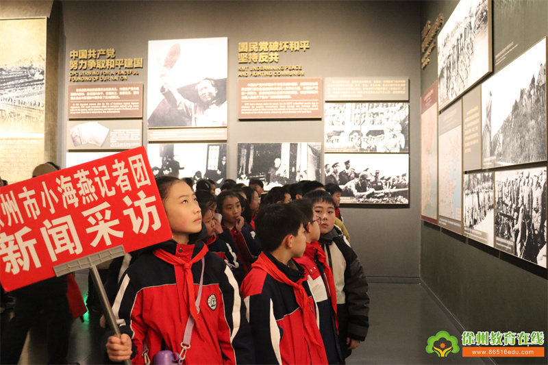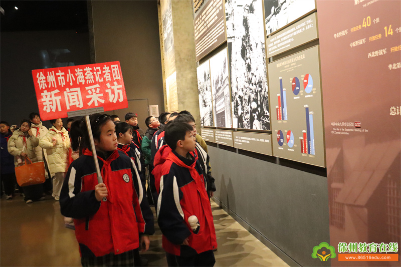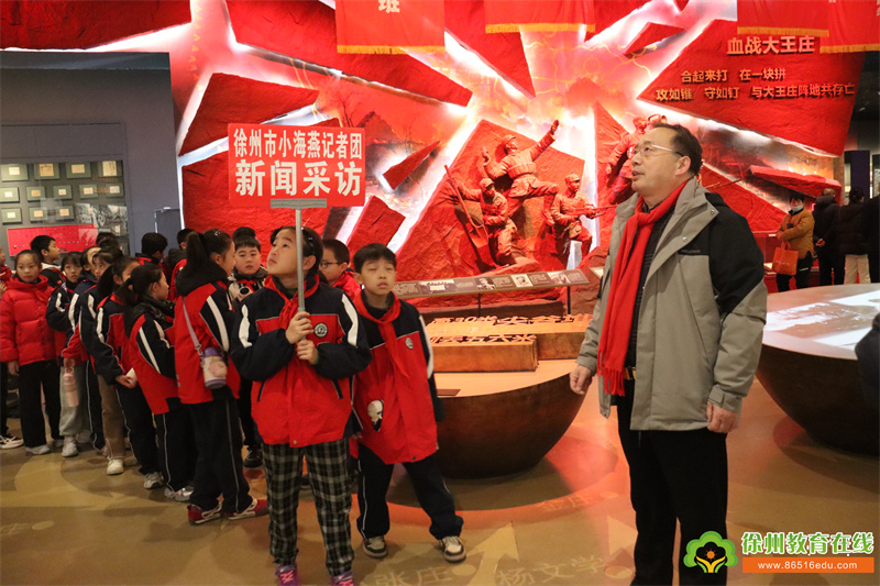 小海燕记者团总部主任陈晓最后说,在淮海战役胜利77周年之际,徐州市小海燕记者团奎山小学的小记者们走进淮海战役烈士陵园,举行“传承红色经典,争做世纪新人”为主题的研学探访活动,活动很有意义,收获很大。77年前,在徐州这片热土上,华东野战军和中原野战军以60万兵力对敌80万,创造了世界战争史上以少胜多的奇迹。这场历时66天的战役,歼灭国民党军55.5万余人,彻底粉碎了国民党的防御体系,为解放全中国奠定了决定性基础。习近平总书记曾强调:"革命胜利来之不易,靠的是英雄主义精神,更靠人民的支持和奉献。" 让我们以先烈为镜,将红色基因融入血脉。作为新时代少年要坚定理想信念,坚持德智体美劳全面发展,践行“六个坚持”,努力成长为有理想、敢担当、能吃苦、肯奋斗的栋梁之材。