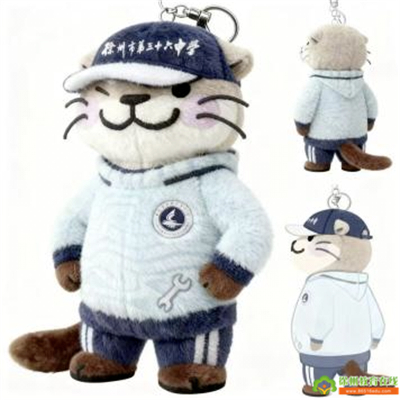 在创意实用类文创板块,系列作品兼具实用性与趣味性:造型俏皮的行李牌,印刻“这是我的行李箱!”的趣味文案搭配卡通鱼图案,成为校园出行的实用小帮手;定制直尺融入校徽与蓝色波纹设计,将校园元素无缝衔接学习用品,让文创贴近日常学习生活;而作为校园文创吉祥物的水獭挂件,身着印有校徽的校服、头戴刻有校名的帽子,萌趣十足的造型成为学生们追捧的“人气选手”,也让校园文创更具亲和力与辨识度。